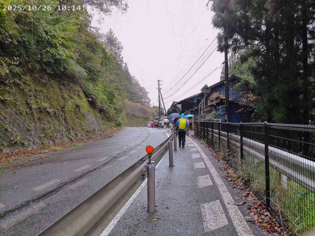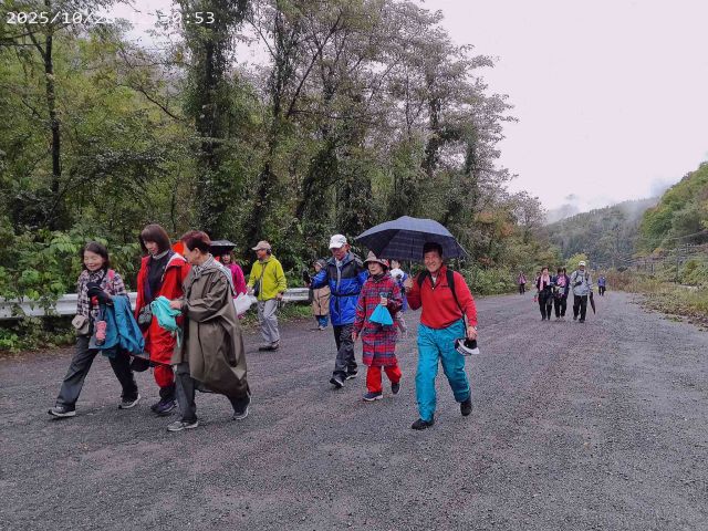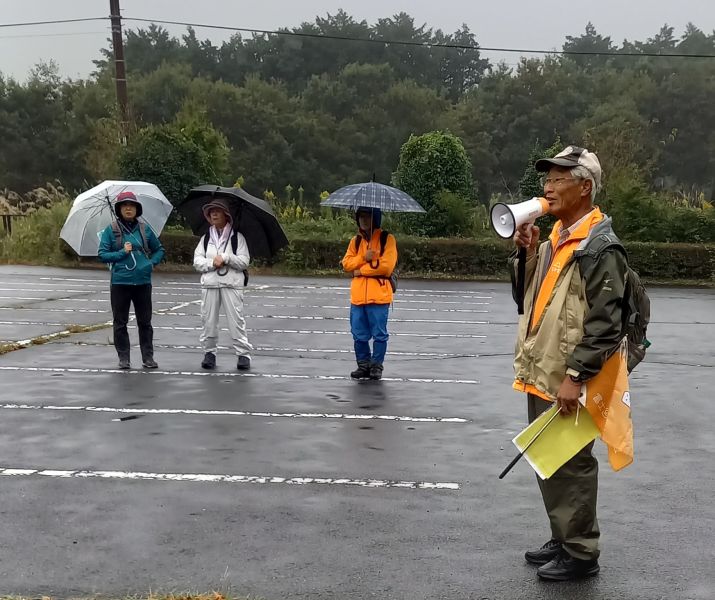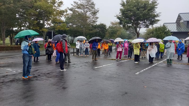 あさぎりフードパーク主催 秋の朝霧高原ウォーク 台風22号と23号が来ている関係で曇り空 事務所へ立ち寄って購入したばかりのデジカメを持つ。 このデジカメの使い方がいまいちわからず、結局失敗だった。 そしてスマホで撮ったつもりの動画も撮れていなく申し訳ありません。 撮れたものは数枚です。 ![]() 雨天の中 開会式 ![]() 森竹鍵治歩こう会会長 挨拶と注意事項 ![]() 参加者は遅れてきた方を含め111名(歩こう会スタッフ20名含む) ![]() 雨具は傘が多いです。 私は杖をついて根原集落まで往復しました。 戻ってからは歩こう会スタッフにお弁当・お茶・お汁粉引換券・参加賞(500円の商品券)を 山田さんと配りました。 雨もずっと降り続きましたが小雨で良かったです。 何となく疲れているようで、お休みモードとなってつぶやきは翌日です。 61.8 9342歩 漢 |
