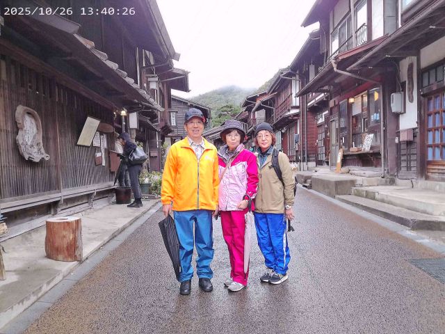 旧木曽路・リンゴ・奈良井宿ウォーク 折りたたみ傘を持って出る。雨は降っていない。 受付が終わるまでは雨はふらないでほしいと思いながら富士宮駅へ みどり湖PAで雨具を付ける。スタート時は小雨 ![]() スタート後、動画を撮りました。 新しいデジカメで朝霧高原ウォーク時には失敗しましたが 今回は撮れました。 動画 是より南木曽路の碑付近から贄川宿へ ![]() 動画を撮り終わると最後尾、前と20m程離れ、杖無しで一生懸命歩きました。 それでも、贄川駅までの行程ではどんどん差が広がり、最終的には500m以上離れました。 ![]() 贄川駅で2号車短縮組、私を入れて11名。 ![]() 同じく1号車 17名 ![]() 道の駅ならかわ へ後少し、本隊です。 ![]() 最後尾は石川保彦さん・希世美さん。 途中、いろいろと助けていただきました。 感謝です。 ![]() 奈良井宿はフリーウォーク ![]() 五平餅を食べました。 お茶がおいしかったです。 ![]() 奈良井宿はきれいに整備されています。 ![]() 富士宮駅で一人1袋のリンゴをいただきました。 以前は6,7個入っていたのに 今年は 値段が高いですね。 美味しく食べました。 62.5 13361歩 漢 |