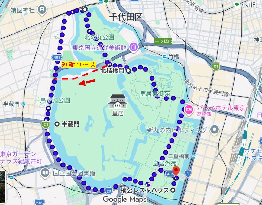 皇居一周とレインボーブリッジウォーク 申込者105名 一昨年11月の「板敷渓谷と昇仙峡ウォーク」以来の100人越えです。 本当に沢山の方が参加されてくれ嬉しい限りです。 皇居一周では一部短縮コースを作成しました。 足に自信の無い方は当日その場で短縮コースを選んで下さい。 900m程短縮されます。 ![]() 2276歩 漢14 |