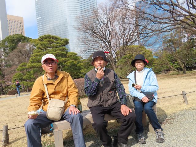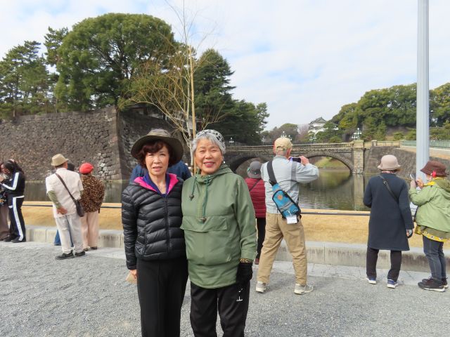皇居一周とレインボーブリッジウォーク 天候に恵まれ、足の調子も良く、杖無しで18167歩は術後最高歩数でした。 ただ、最後は疲れましたね。帰りは海老名サービスエリア付近の事故渋滞にはまり 1時間以上遅れ、富士宮駅到着は19時でした。 ただ、怪我や体調不良も無く、みなさん皇居とレインボーブリッジを楽しんでいましたね。 最初に予定していた楠公広場では体操を始めると係員が飛んできて 「許可を取ってありますか? 止めて下さい。」 芝生から出て始めると「ここも駄目です」 マイクとアンプも使えなく新参加者の紹介も無く出発。 二重橋前でパチリ 明日は天皇誕生日でその支度ができています。 二重橋から大手門に向かう 内堀に沿って 大手門前では手荷物検査 天守台跡 天主台横で集合写真 途中から短縮コースを連れてあるきまいした。1号車2名、2号車5名です。 短縮コースの皆様、良く歩きました。 本体も楠公駐車場へ帰ってきました。 浜離宮恩賜公園で昼食 皆さん美味しい昼食に大満足。 午後は品川からレインボーブリッジへ レインボーブリッジは歩道が北と南に分かれています。私は北を歩きました。ゆりかもめも通ります。 途中で記念写真 後で考えるとこのアングルが良かったですね。 レインボーブリッジの全景 お台場には河津桜が咲いていました。 帰りにもう一度バスでレインボーブリッジを渡りました。 18167歩 漢 |